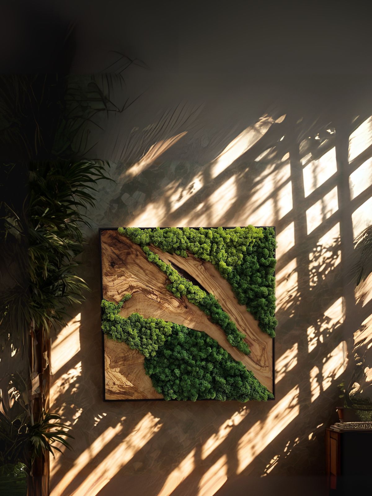 Premium Norwegian moss paired with Mediterranean olive wood.